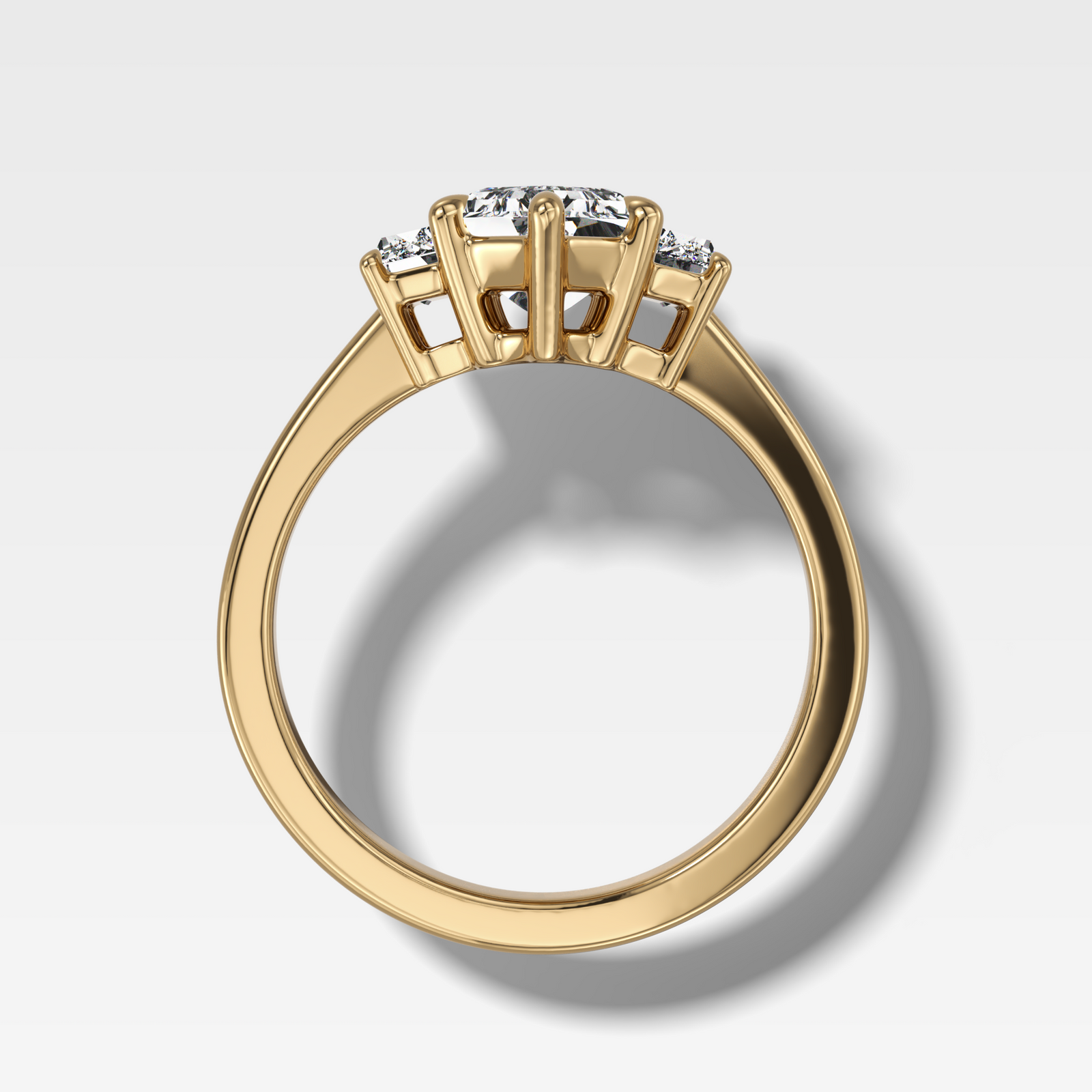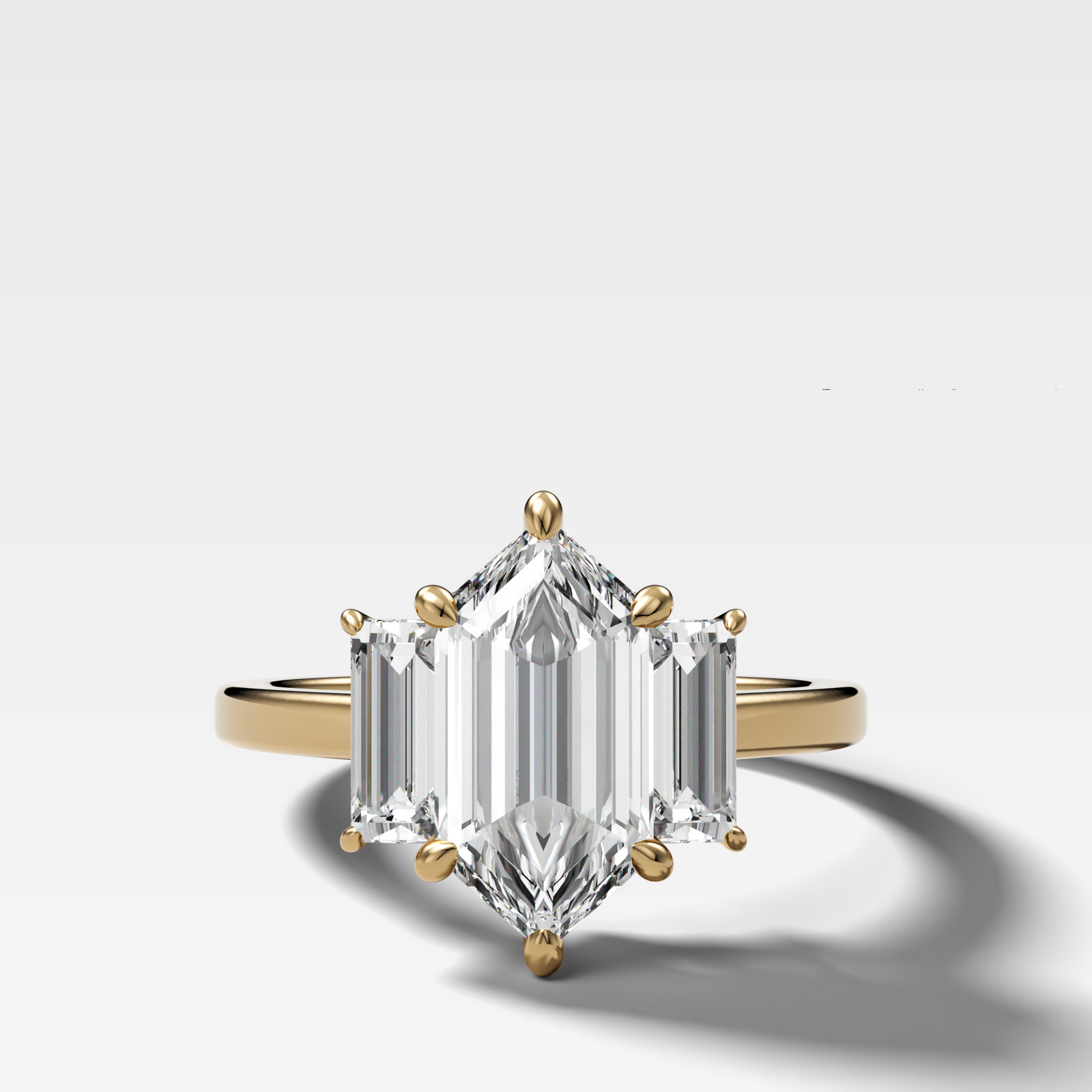 The three stone engagement ring trend in 2024 beautifully captures both romance and symbolism. Each stone in this design represents a significant time in a couple's relationship: the past, present, and future, making it a deeply meaningful choice for those about to embark on a lifelong journey together. This style allows for a variety of creative interpretations, with couples choosing different shapes and sizes for the central and side stones to tell their unique story. The versatility and sentimental value of three stone rings are making them a particularly cherished choice among couples looking for an engagement ring that not only dazzles but also tells a story. Whether it's with equally sized stones for uniformity or a larger central diamond flanked by smaller gems for a traditional look, these rings offer a stunning blend of symbolism and style. They're perfect for those who desire a ring that's not just an ornament but a testament to their enduring love and shared experiences. In 2024, the three stone engagement ring is more than a trend; it's a timeless choice for couples celebrating their journey together.