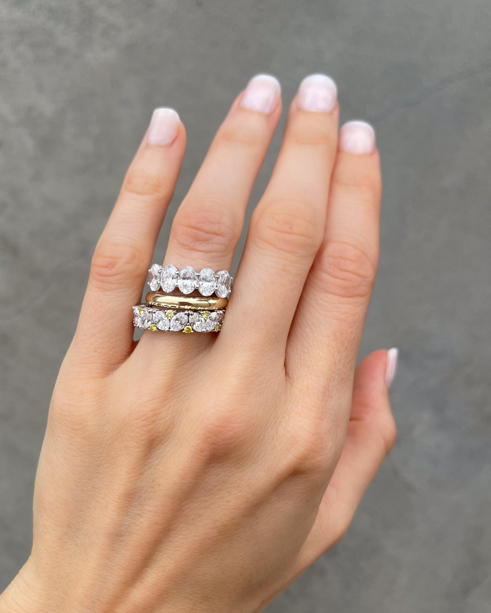 Women's wedding bands come in a diverse range of styles at GOODSTONE, from understated, classic metal bands to exquisite rings adorned with sparkling gems. Our selection includes a variety of options for every taste: elegant plain gold or platinum bands, dazzling diamond rings, vibrant sapphire rings, and timeless eternity rings. For those who love a layered look, you have the freedom to choose multiple rings and create a unique stack that perfectly captures your style.