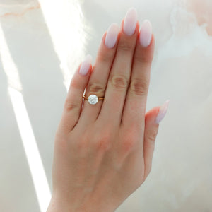 The most minimal ring we've ever designed – two delicate bezel lips protect the diamond's edges.... and that's it. We've left the sides completely exposed so that you may appreciate your diamond from all angles.