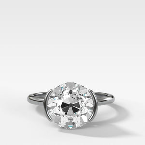 Half Bezel Solitaire Engagement Ring With Old Euro Cut Diamond