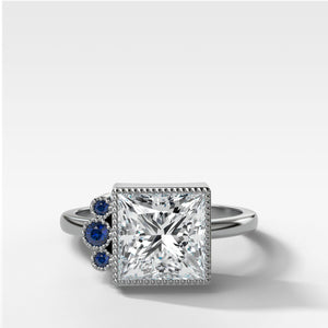 Send ring sizerA milgrain bezel-set diamond is accompanied by a cluster of round sapphires*, creating a contrast of colors, shapes and textures whose effect is perfectly harmonious and elegant.
