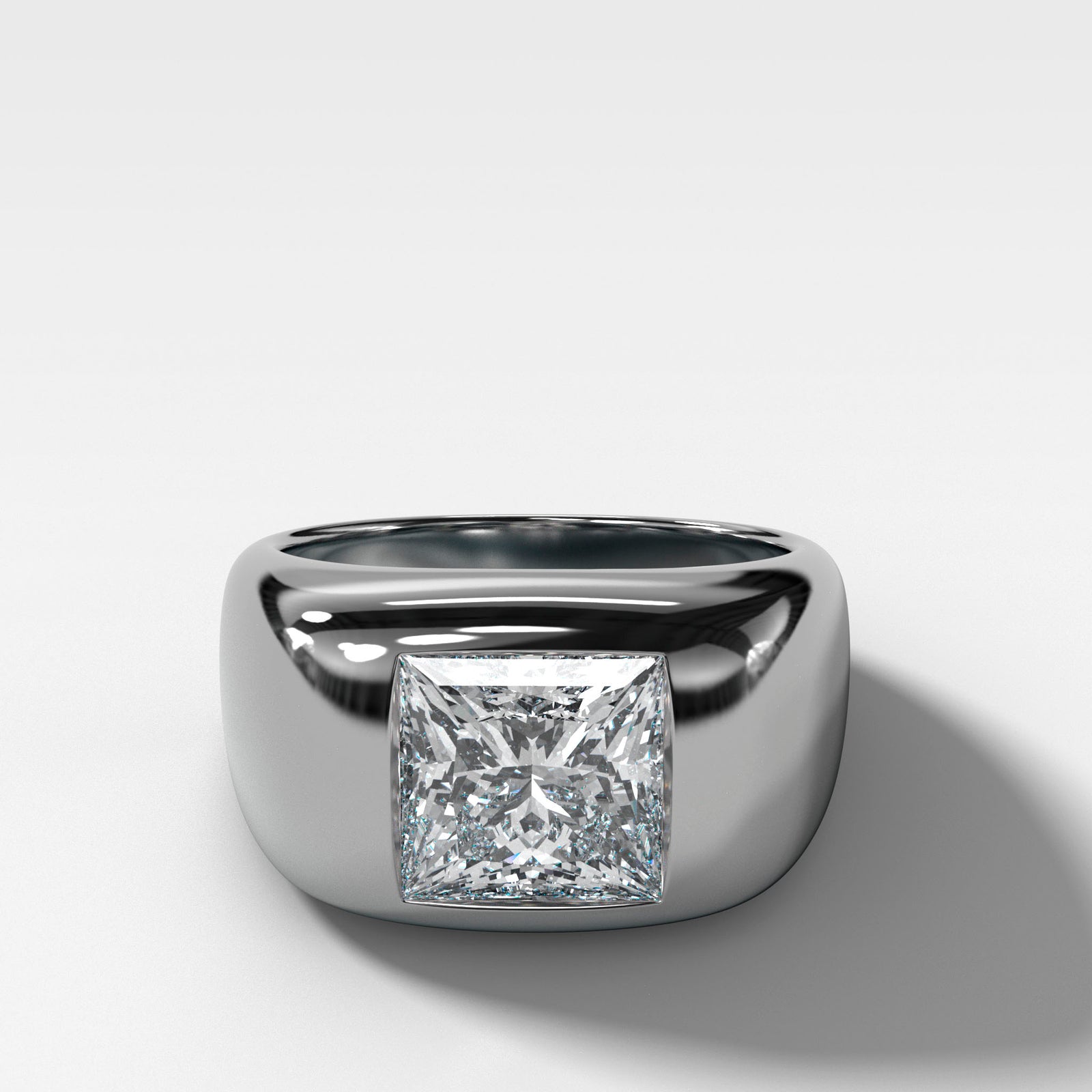 The Burnished Solitaire Engagement Ring Series is one of our boldest engagement ring collections. Featuring a distinctive flat-top band and a prong-free mounting, this collection showcases a single, dazzling center diamond encased in a burnished precious metal setting.