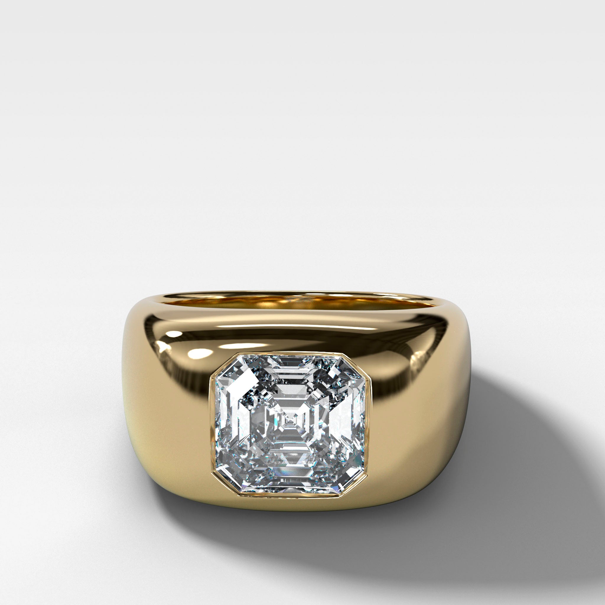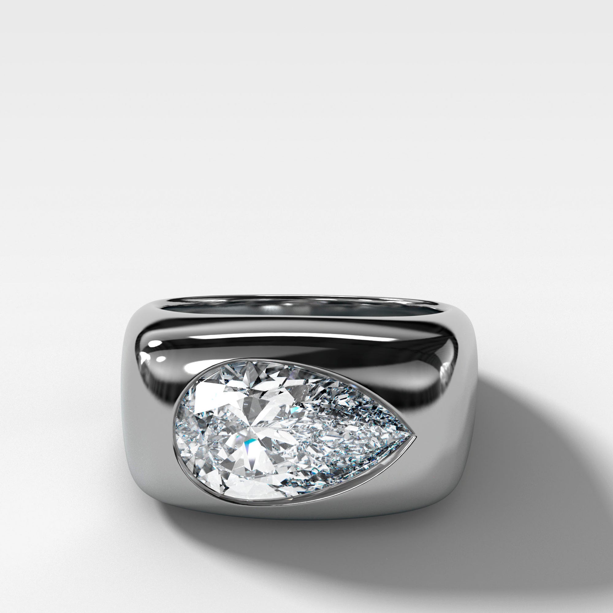 Behold, the Burnished Solitaire Engagement series. Distinctive with its flat top and prong free mounting, these burnished solitaires are the chicest chunky ring with a dazzling single center diamond encased by a burnished precious metal setting.