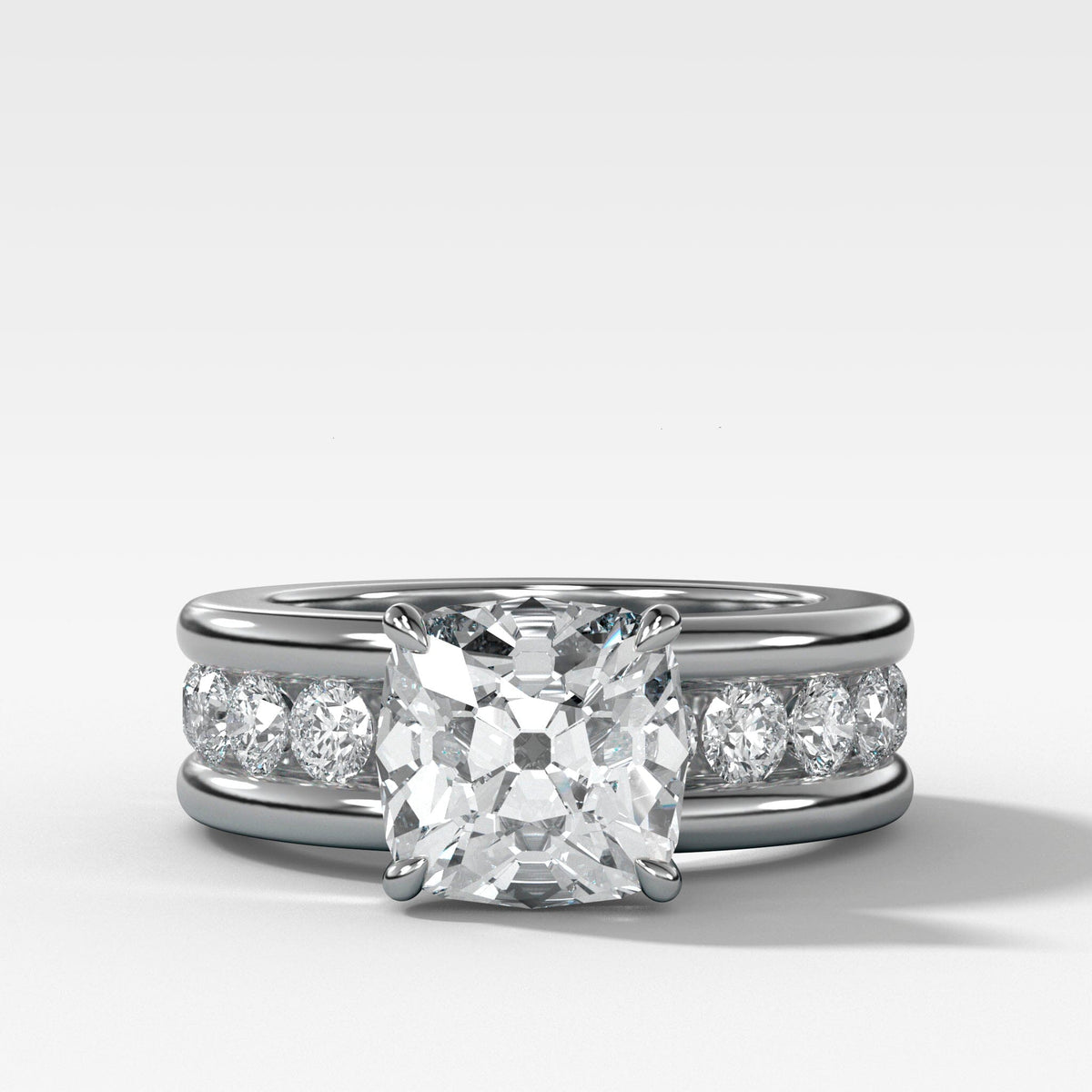 Chunky Channel Set Engagement Ring with Old Mine Cut Diamond