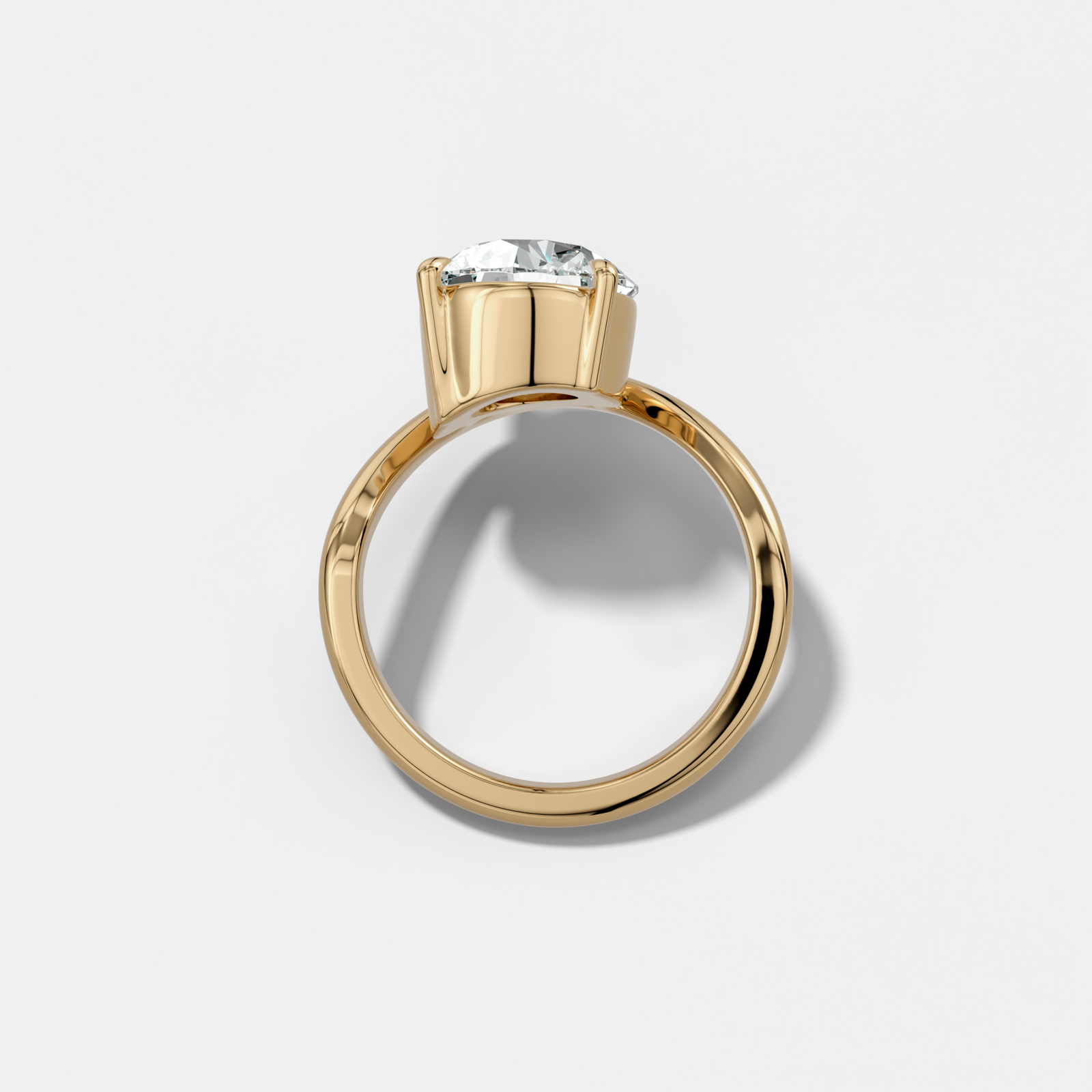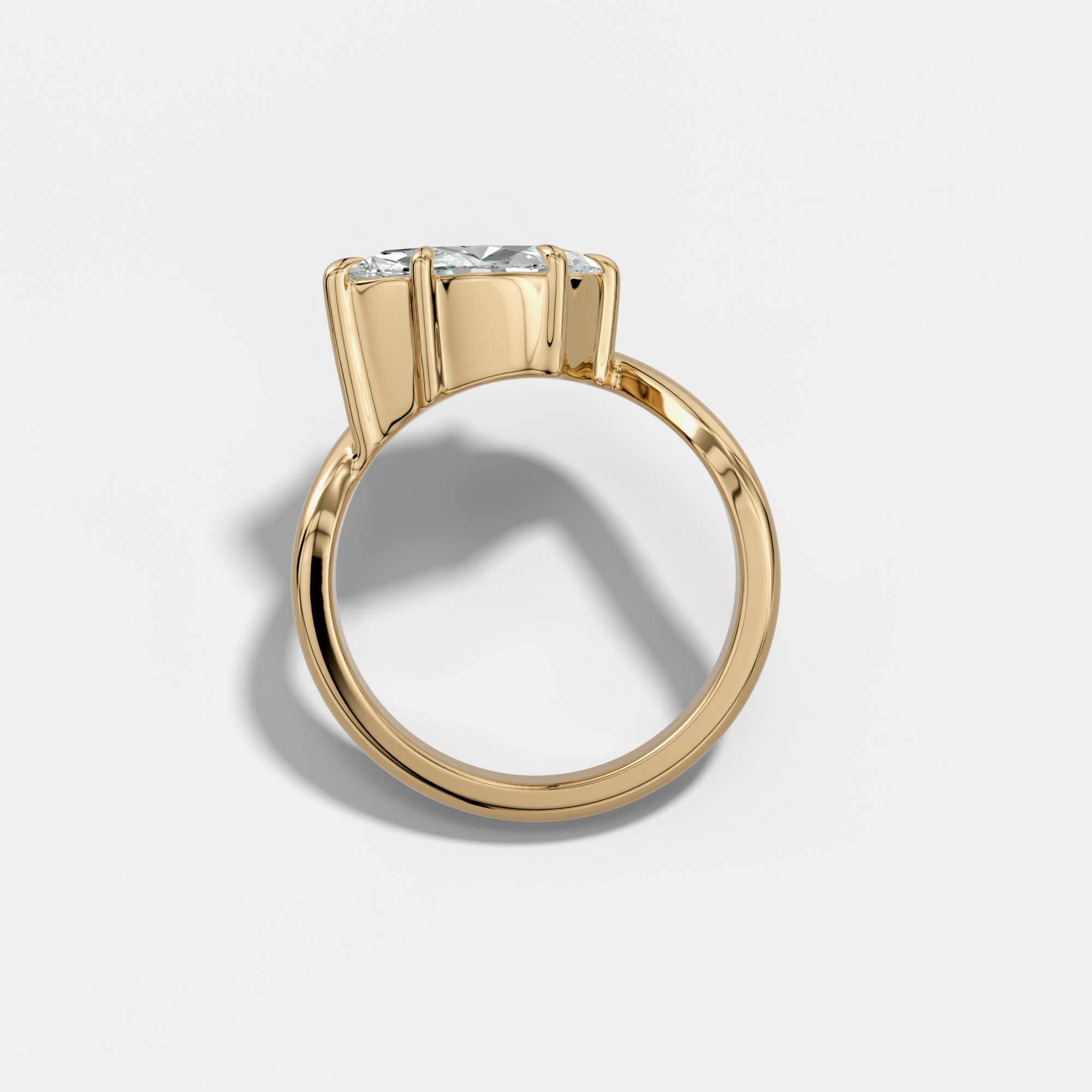 Our Contoured Solitaire base model does not sit flush, but can be designed to sit flush alongside any wedding band, ensuring a seamless and harmonious pairing.