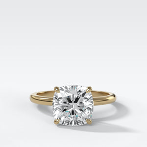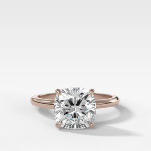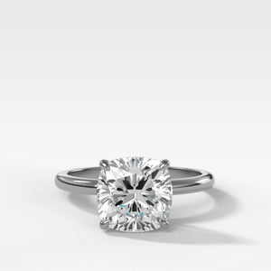 Crescent Solitaire Engagement Ring With Cushion Cut Diamond