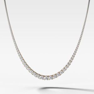 Crafted with outstanding FG/VS color/clarity diamonds, this 16-inch masterpiece emanates an unmatched brilliance and allure, ensuring all eyes are drawn to its mesmerizing sparkle. The Graduated Tennis Necklace is a truly versatile statement piece, whether you're attending an illustrious gala or simply gracing an intimate dinner party – this is the accessory that will elevate your presence on any occasion.