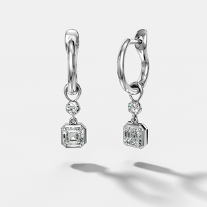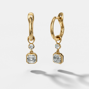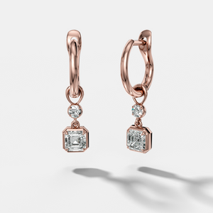 Reversed Mini Tiered Bezel Drop Huggies with Asscher Cut Diamonds