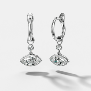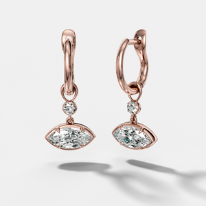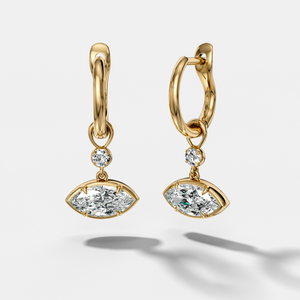 Reversed Mini Tiered Bezel Drop Huggies with East West Marquise Cut Diamond