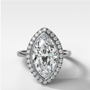 Bezel Set Halo Engagement Ring With Marquise Cut Diamond