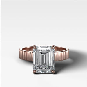 Finest Ridged Solitaire Engagement Ring With Emerald Cut Diamond
