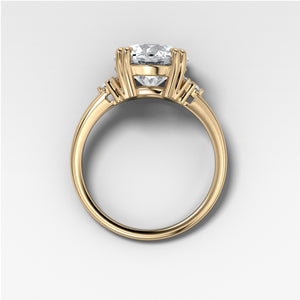 Send ring sizerThis elegant engagement ring features two groups of round diamonds that frame the center stone of your desired size.