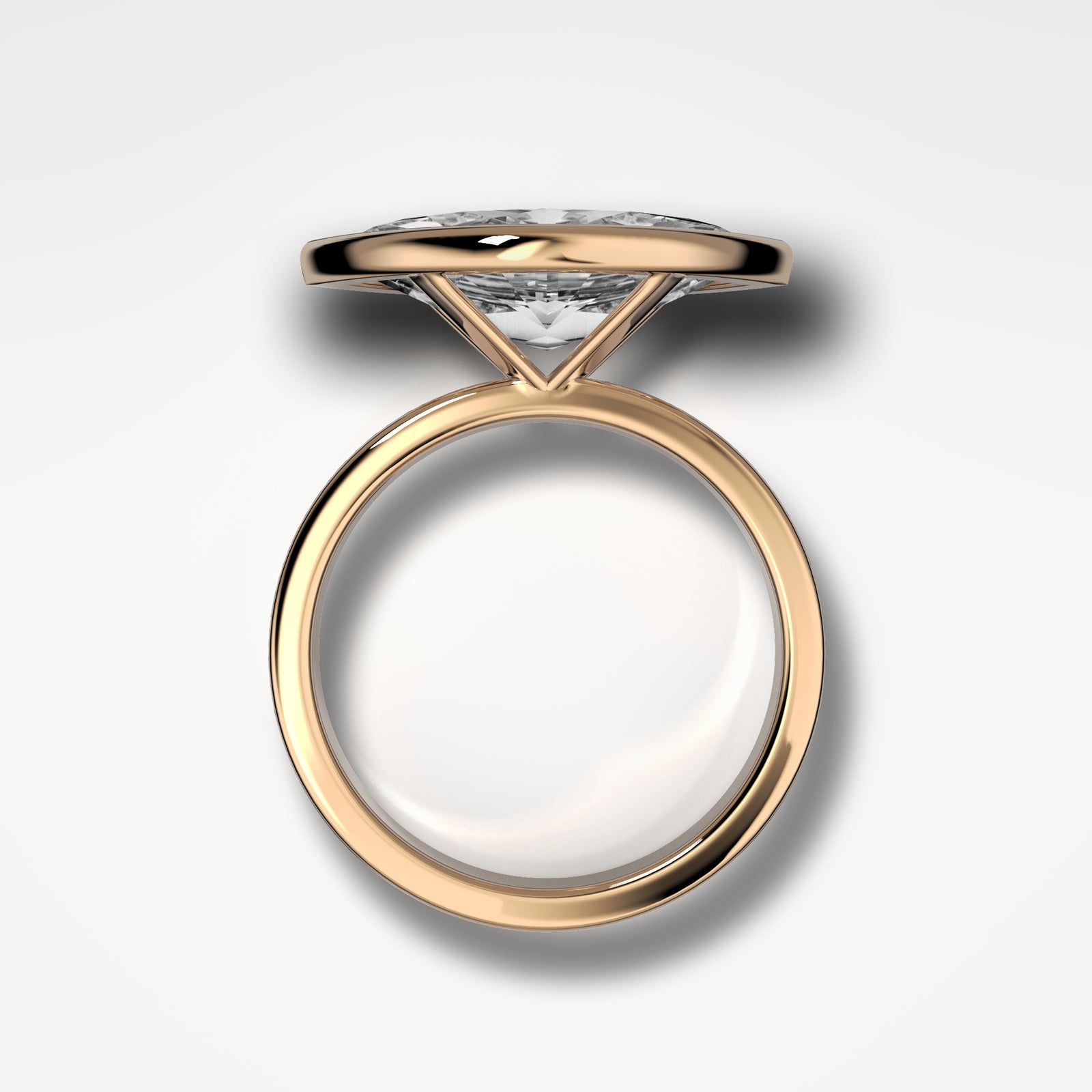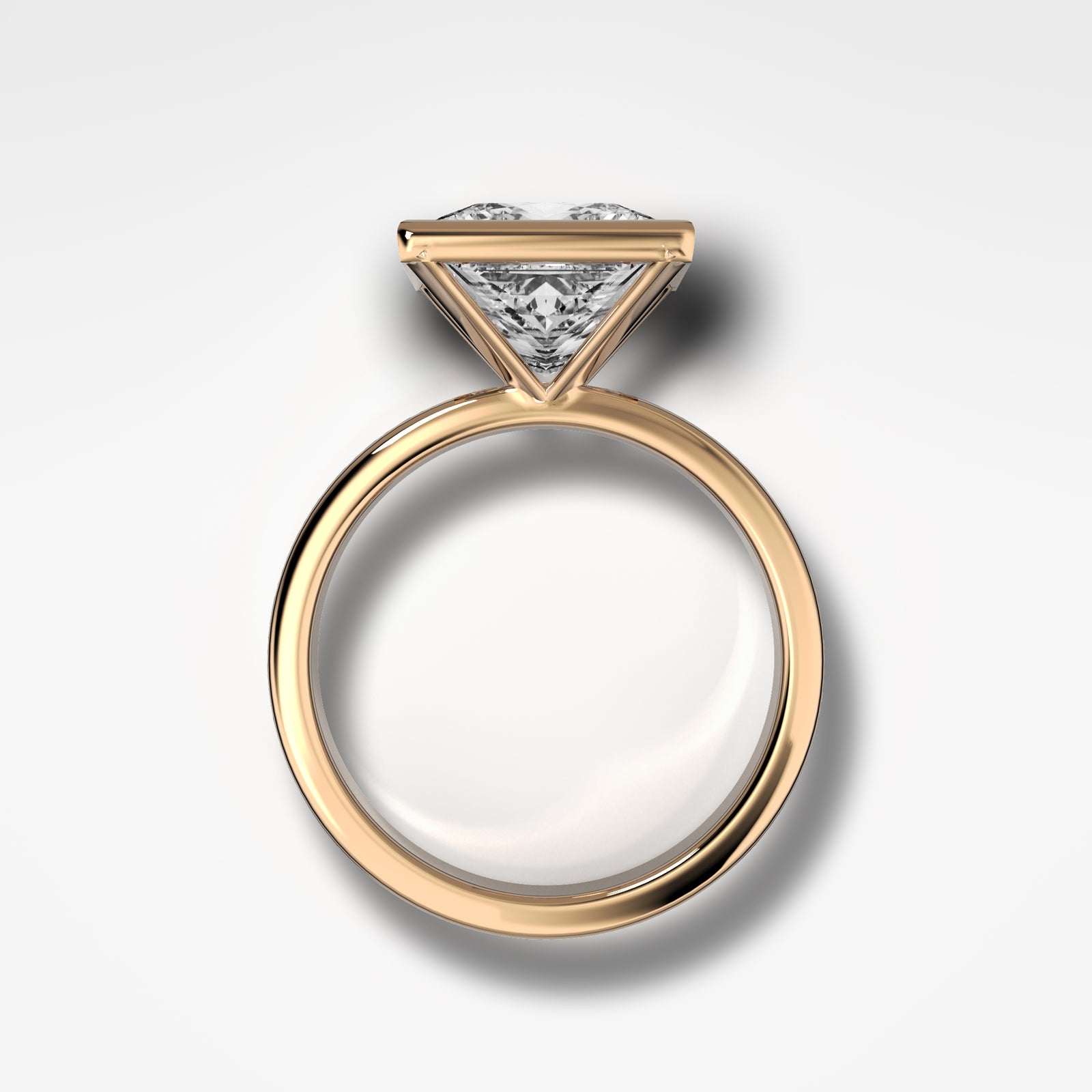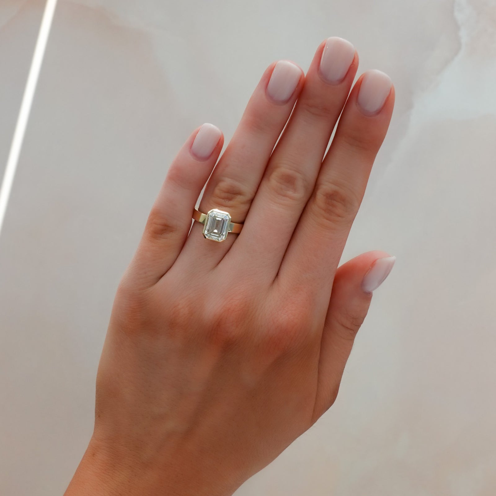 A thicker engagement ring, like our 3.5mm Finest Bezel Solitaire, offers a bold and substantial look, so selecting the right wedding band can beautifully complement it without overpowering the style.