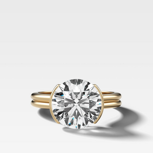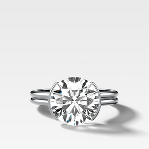 Double Row Half Bezel Solitaire Engagement Ring With Round Cut Diamond