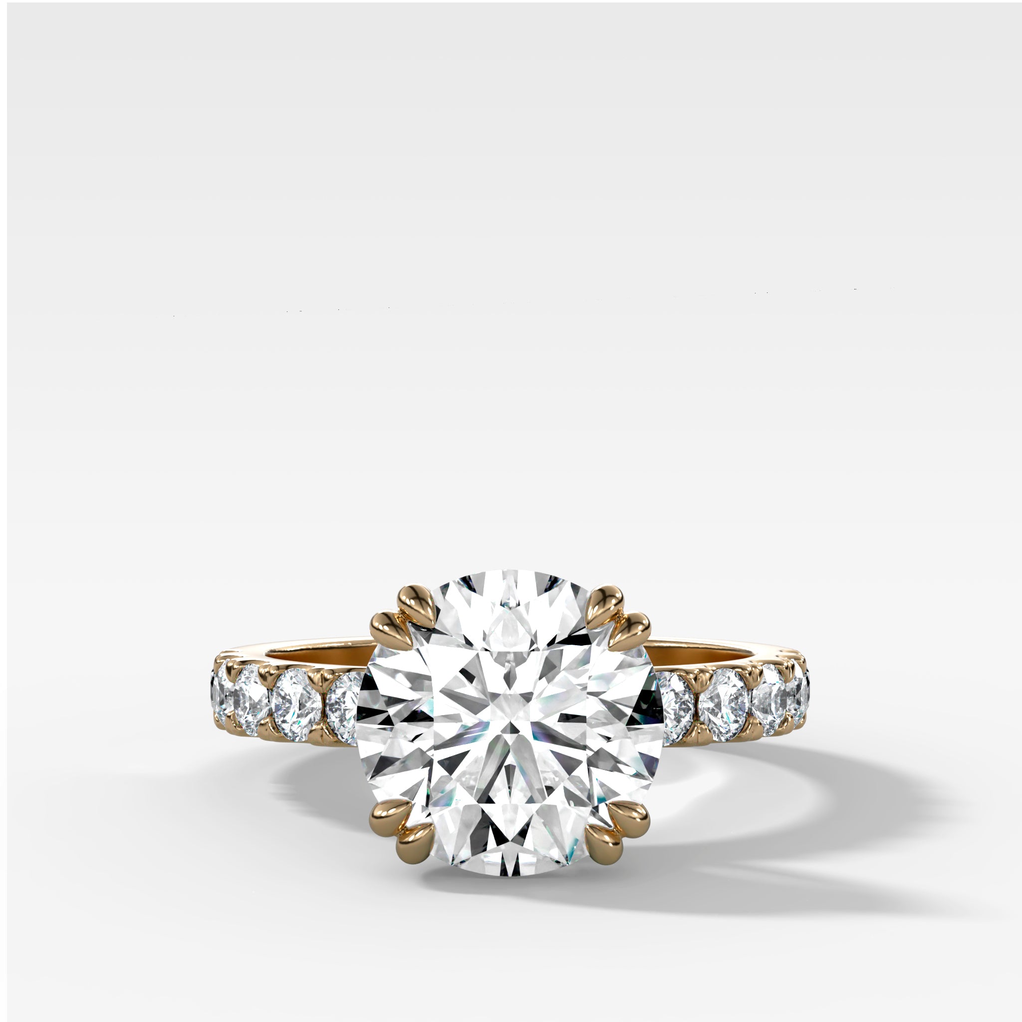 A round diamond possesses a timeless allure, as it is the most classic of all diamond shapes, and the most popular cut for engagement rings. The circular shape maximizes the reflection of light through impeccable symmetry, creating exceptional radiance and shine. The time-honored diamond shape, reminiscent of the best love stories, is sure to be cherished by all today, and appreciated for generations to come.