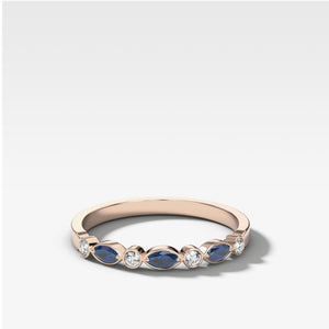 Little round and marquise in a mixed set band including bezel and bead set. Shown here with diamonds and blue Sapphires, but you may customize this style to your taste in gemstones.