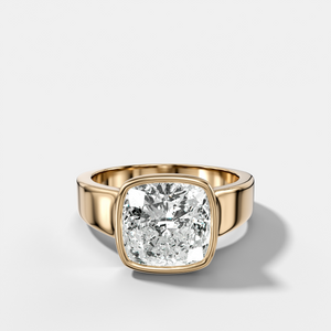 Finest Tapered Bezel Set Engagement Ring With Square Cushion Cut Diamond