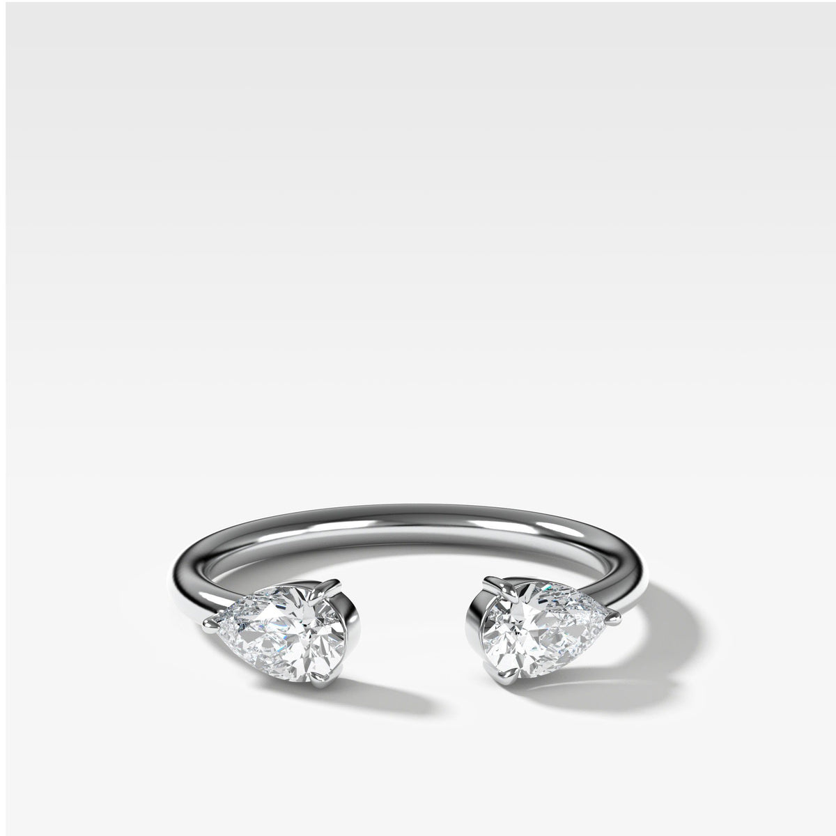 Say more with less – our negative space rings break tradition. Use these Twin Pear diamonds to add a little glamour to your stack.