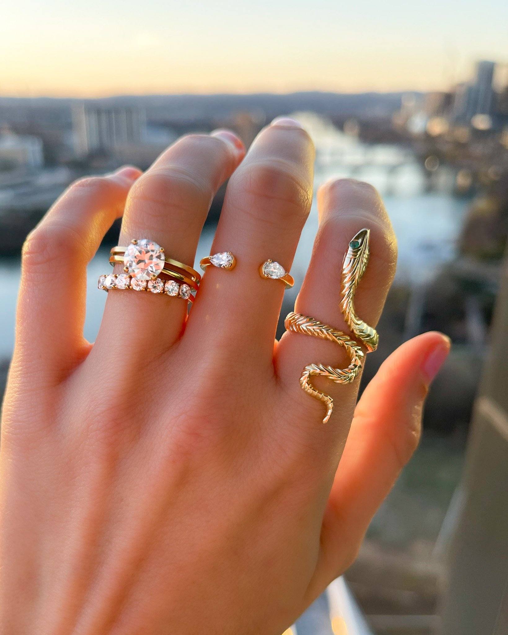Say more with less – our negative space rings break tradition. Use these Twin Pear diamonds to add a little glamour to your stack.