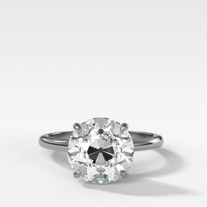 Crescent Solitaire Engagement Ring With Old Euro Cut Diamond