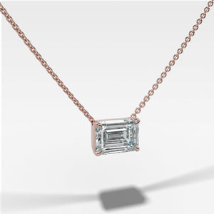 East West Pendant Necklace with Emerald Cut Diamond