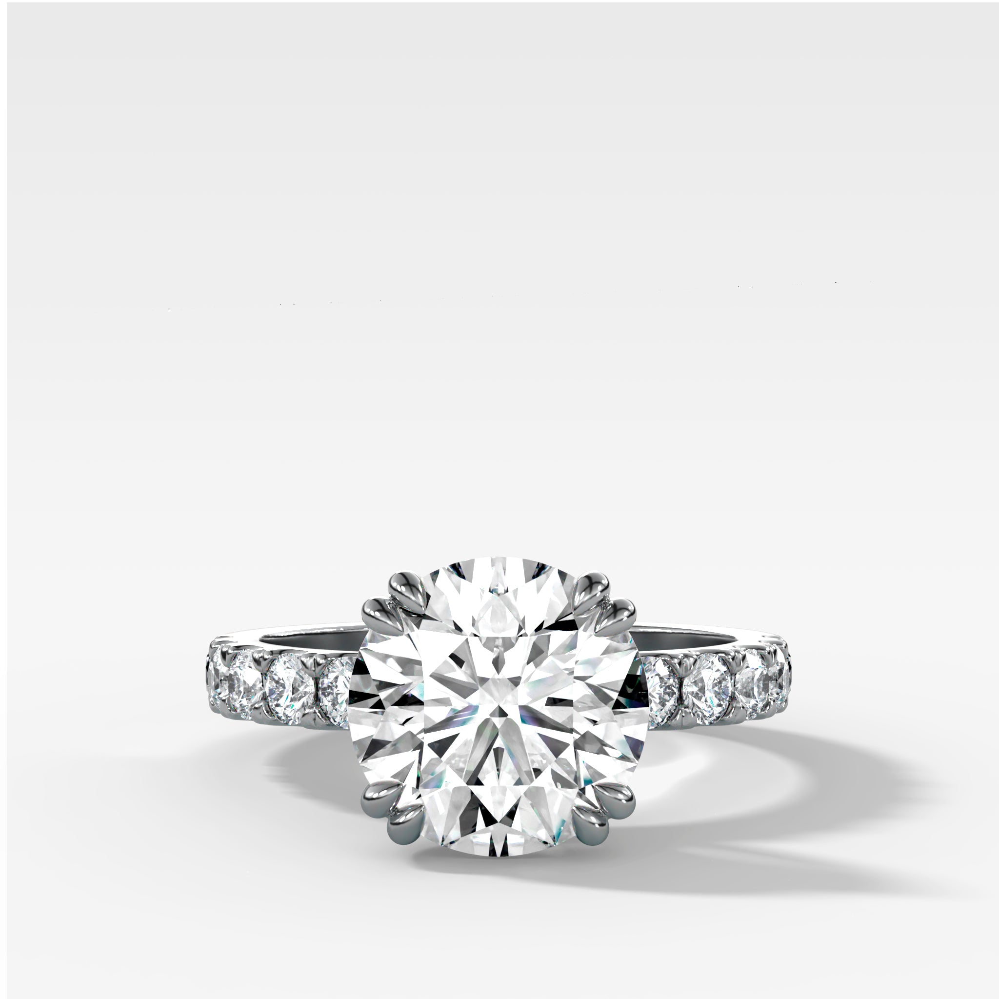 A harmonious blend of minimalist design and maximum brilliance. Each ring in this collection features a series of dazzling melee diamonds pavé-set along the shank. This thoughtful arrangement ensures that the band radiates exceptional sparkle while maintaining a balanced and sophisticated aesthetic. Adding to its allure, this collection also features a hidden halo—a delicate detail that enhances the brilliance of the center stone with an extra layer of sparkle. Ideal for those who appreciate enduring sophistication and subtle opulence, the Zenith Collection is a shining example of exquisite artistry.