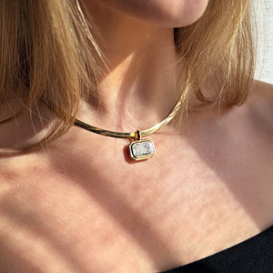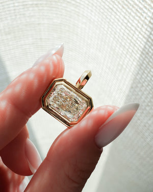 Double Bezel East West Elongated Radiant Attachable Diamond Pendant