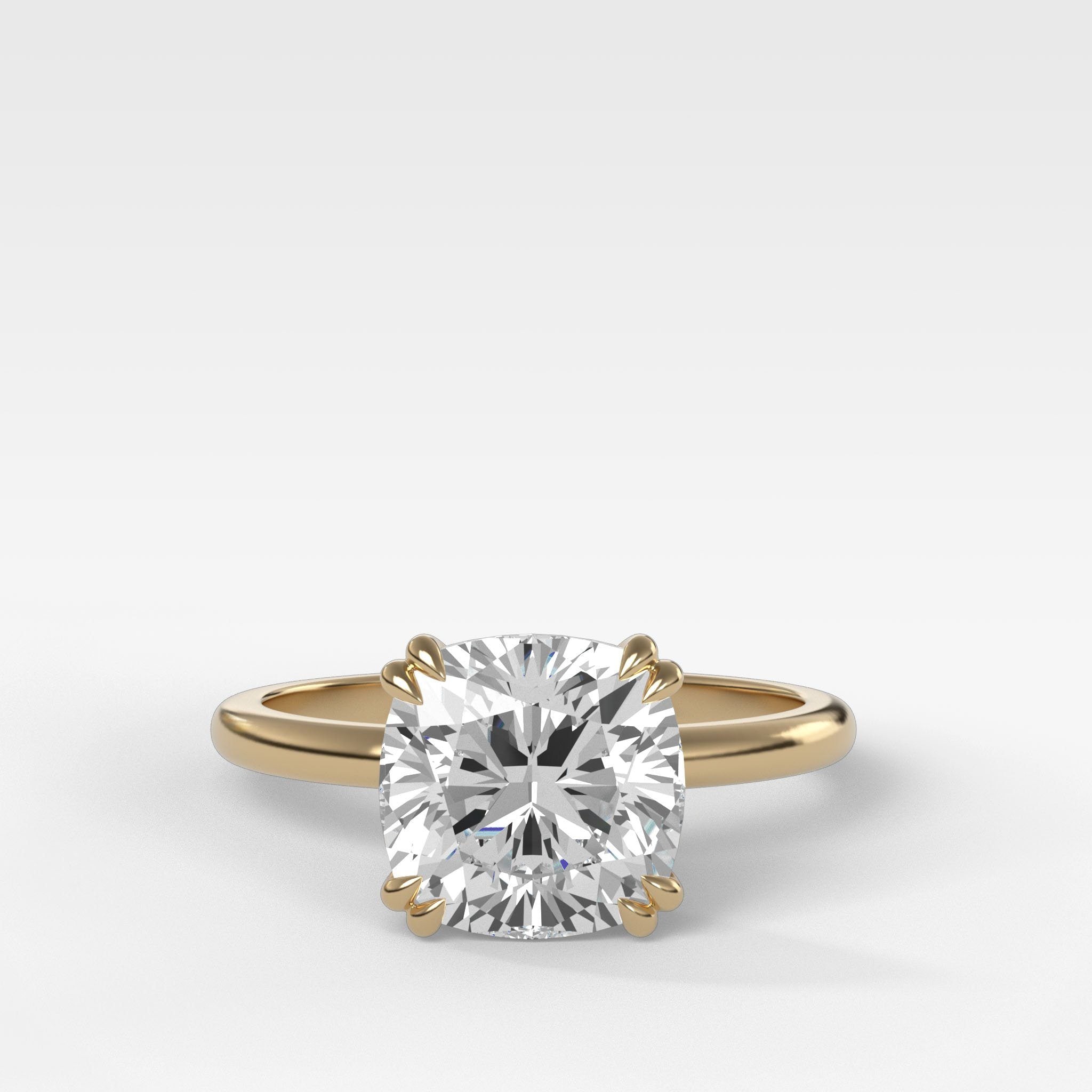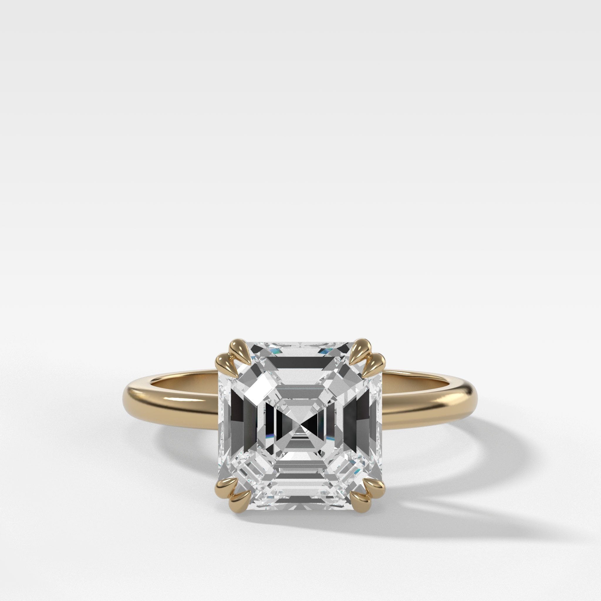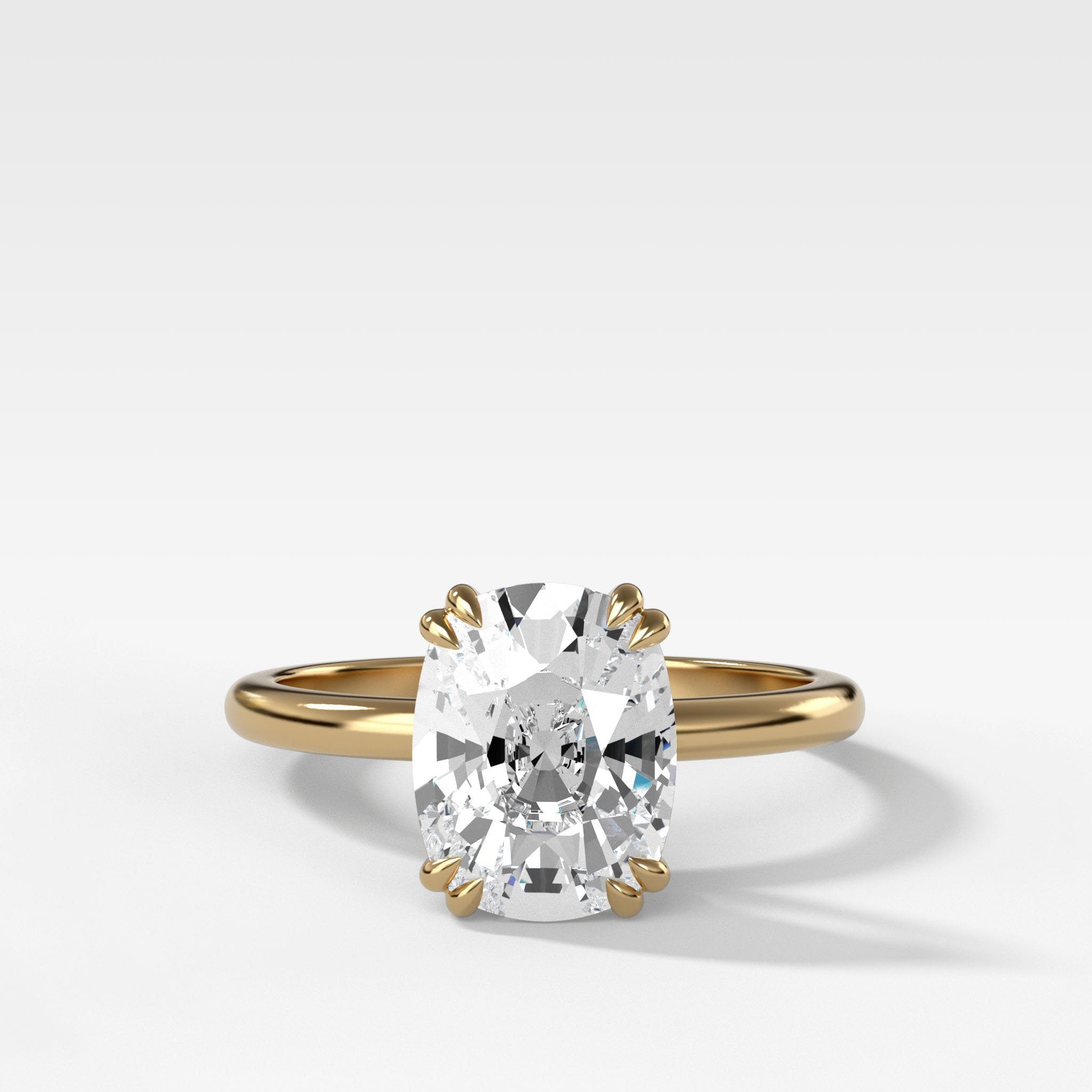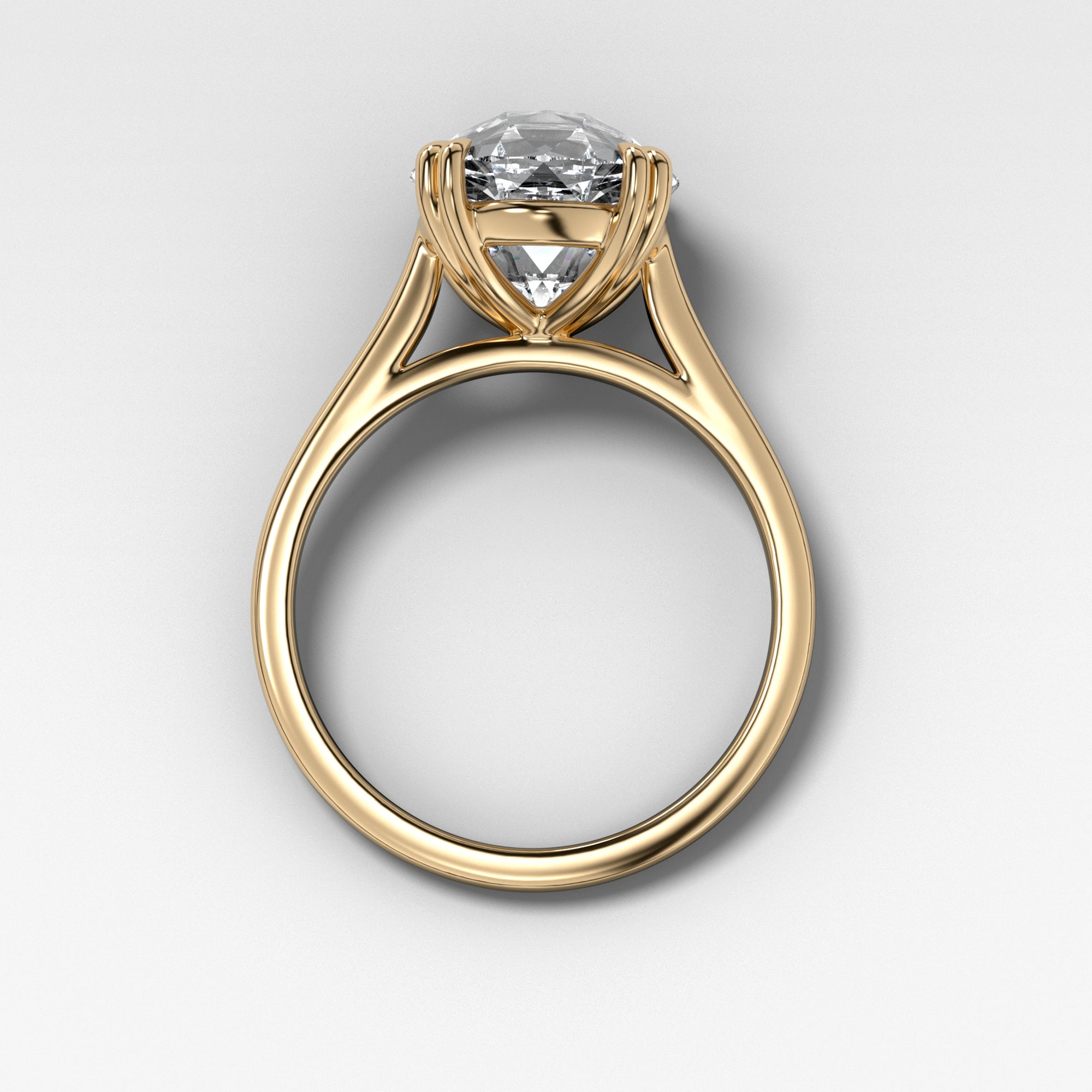 A cathedral engagement ring is a celebration of timeless elegance and architectural beauty. Inspired by the sweeping arches of classic cathedrals, this design elevates the center stone with graceful curves that rise from the band, showcasing its brilliance from every angle. The minimalistic band is perfectly complemented by double claw prongs, a detail that enhances the center stone's presence while providing optimal security.