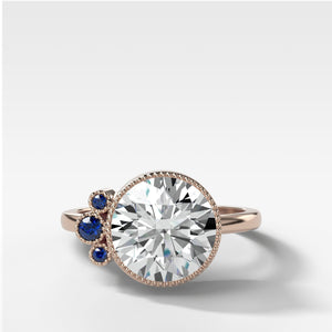 Send ring sizerUn diamante de talla redonda engastado en bisel está acompañado de un grupo de zafiros redondos, creando un contraste de colores, formas y texturas cuyo efecto es perfectamente armonioso y elegante.