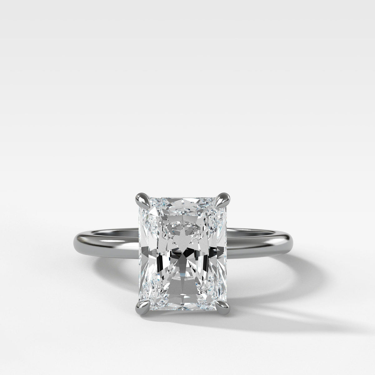 Este anillo, que presenta la versión Radiant Cut del diseño, puede adaptarse a todas las formas principales de diamantes.
