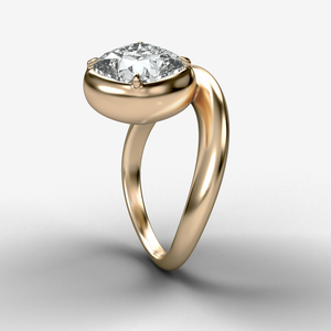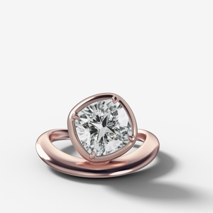 Contoured Club Engagement Ring with a Cushion Cut Diamond
