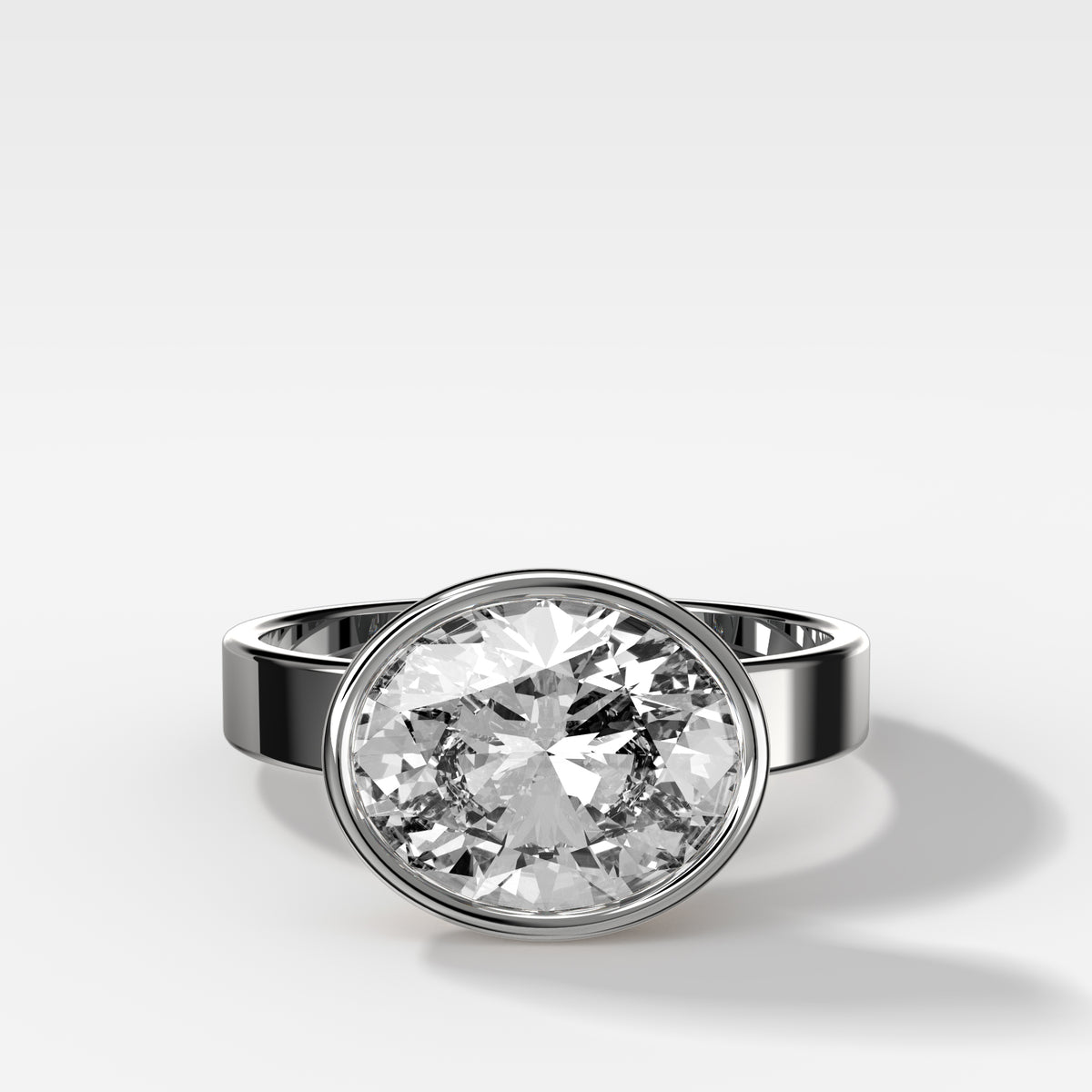 Finest Bezel Set Engagement Ring With East West Oval Cut Diamond