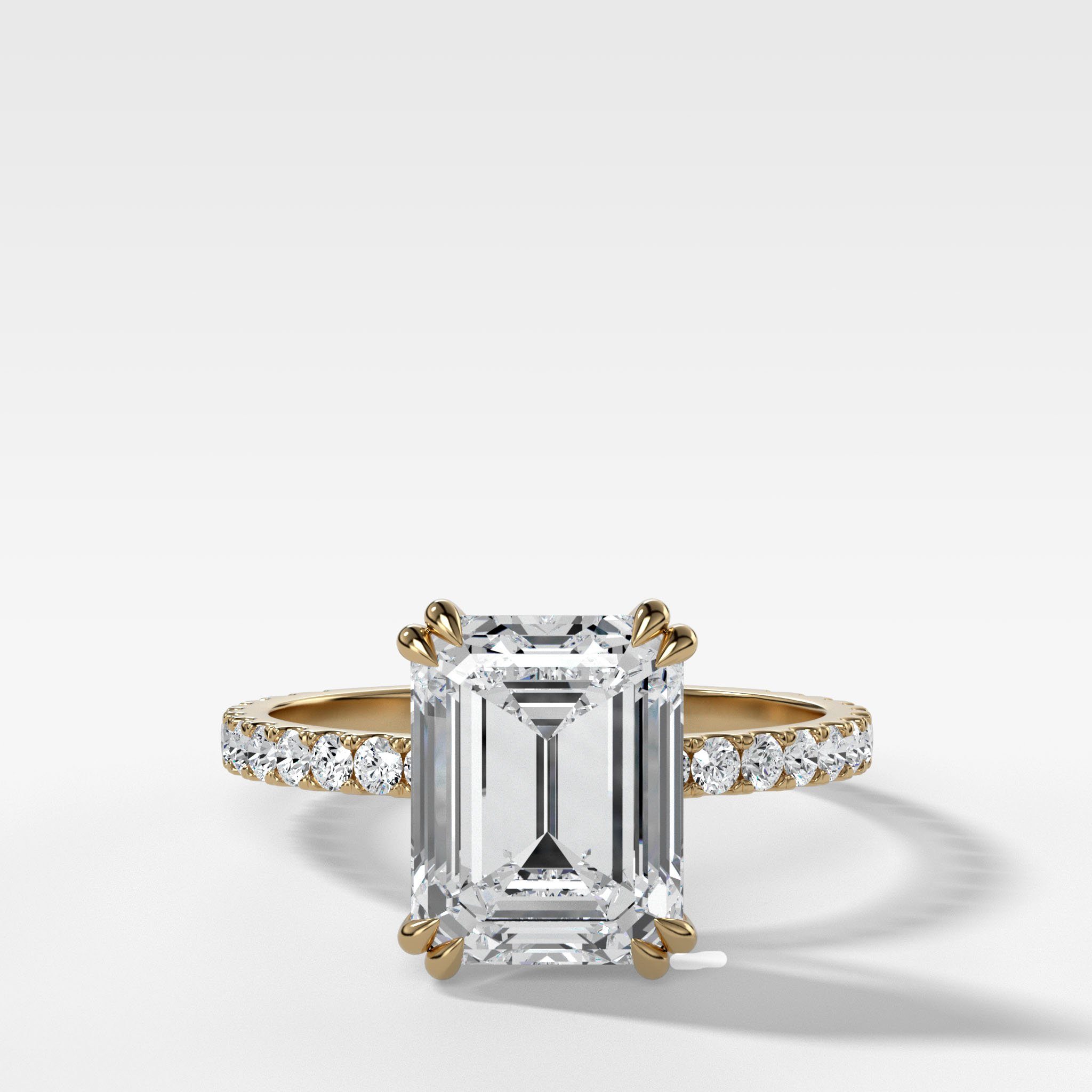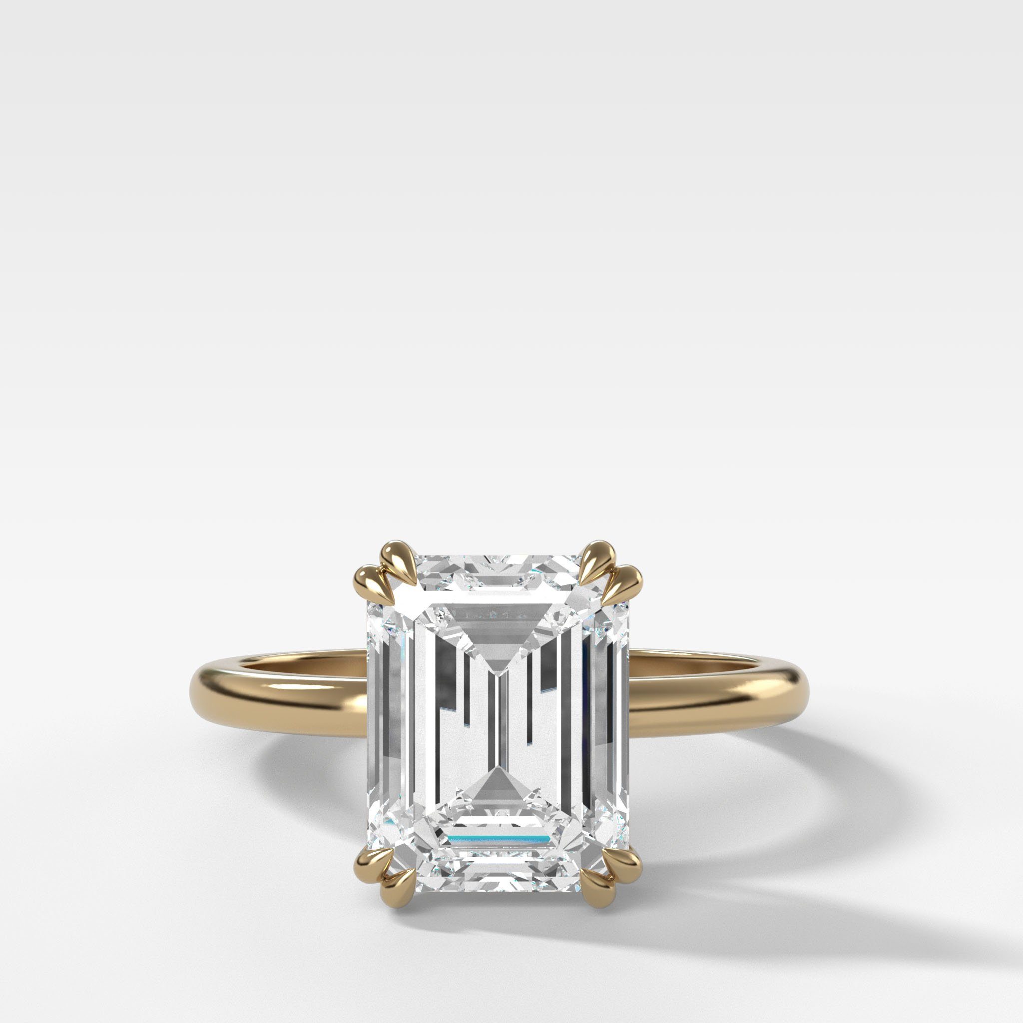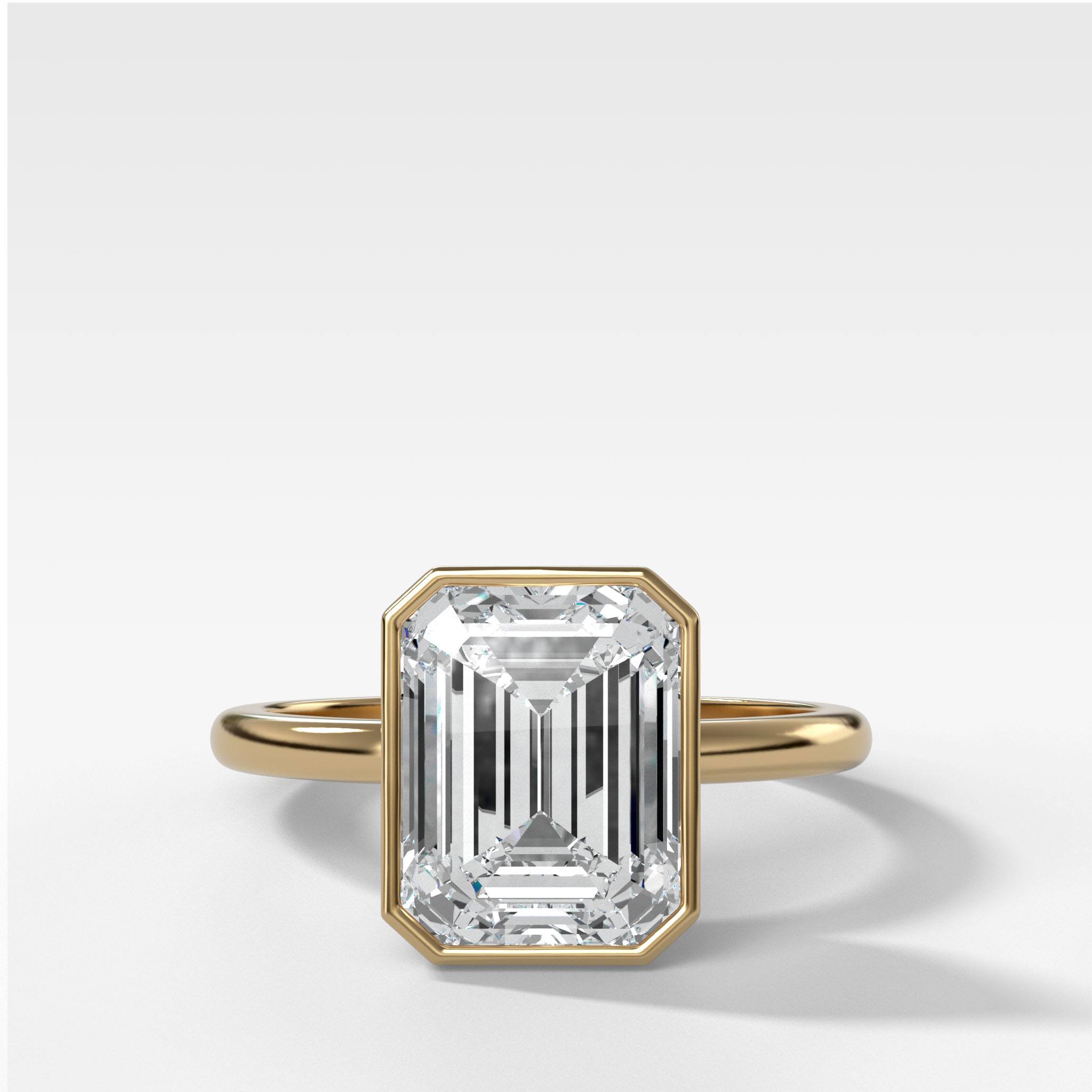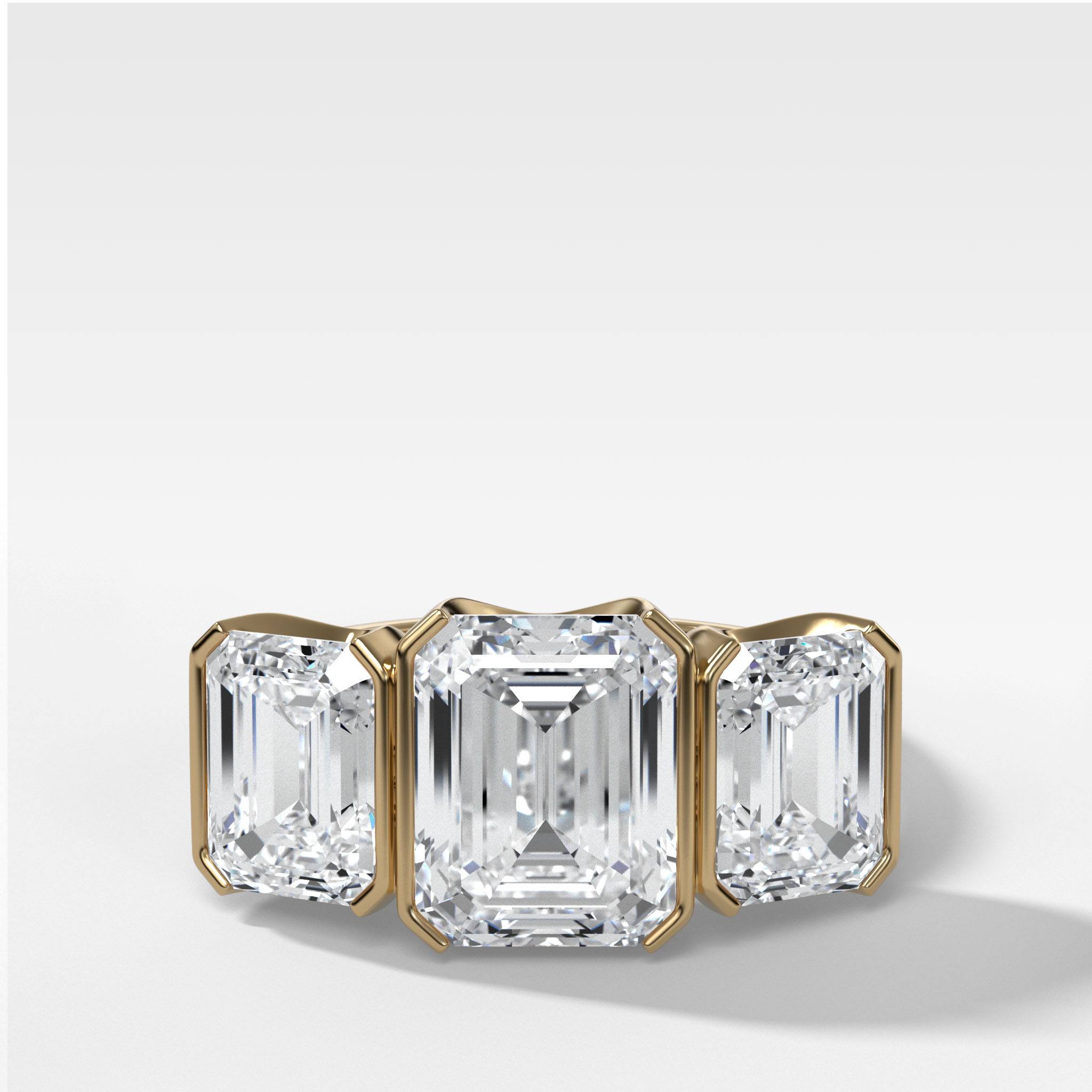 Emerald cut diamonds are an elongated rectangular shape with cut-off corners, featuring a series of step cuts. These step cuts create a mesmerizing play of light, often described as a hall of mirrors, where incredible flashes of light dance within the stone. This unique feature sets emerald cut engagement rings apart, making them a popular choice amongst celebrities like Beyonce and Paris Hilton, who appreciate the allure of this classic design that dates back to the 16th century. Learn more about emerald cut engagement rings here.
