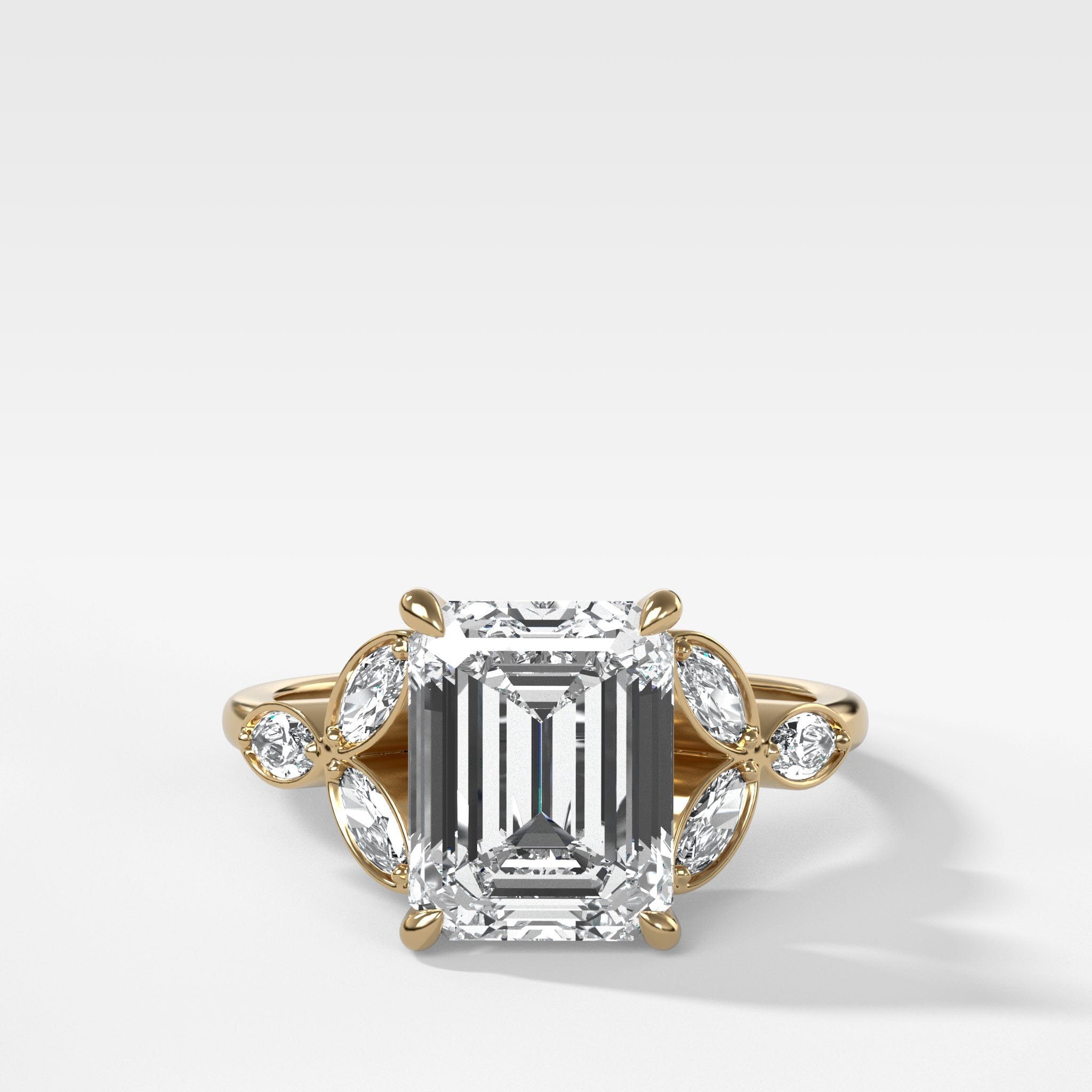 Yes! Emerald cut diamonds can be paired with brilliant stones, such as round brilliant-cut diamonds. This combination can create a striking and elegant contrast in an engagement ring or other fine jewelry piece. The emerald cut's step-cut facets and rectangular or square shape offer a more subdued and classic look, while brilliant-cut stones provide sparkle and brilliance.