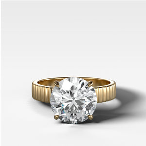 Finest Ridged Solitaire Engagement Ring With Round Cut Diamond