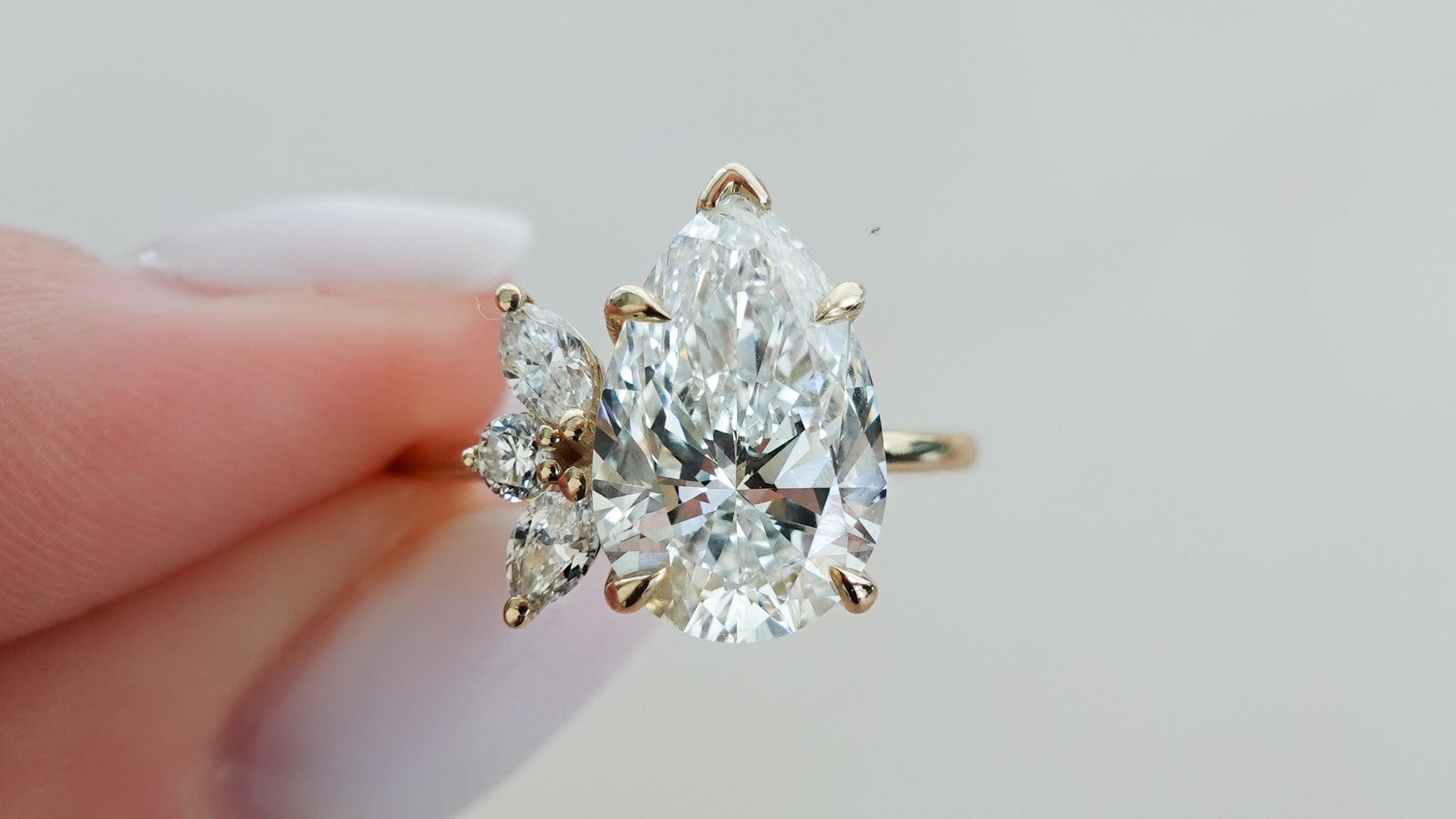 The Lotus engagement ring is designed as a flush-fit ring, meaning its setting allows it to sit seamlessly alongside a wedding band. This versatile design makes it compatible with any of our wedding bands, so you can choose a style that best reflects your personal taste.