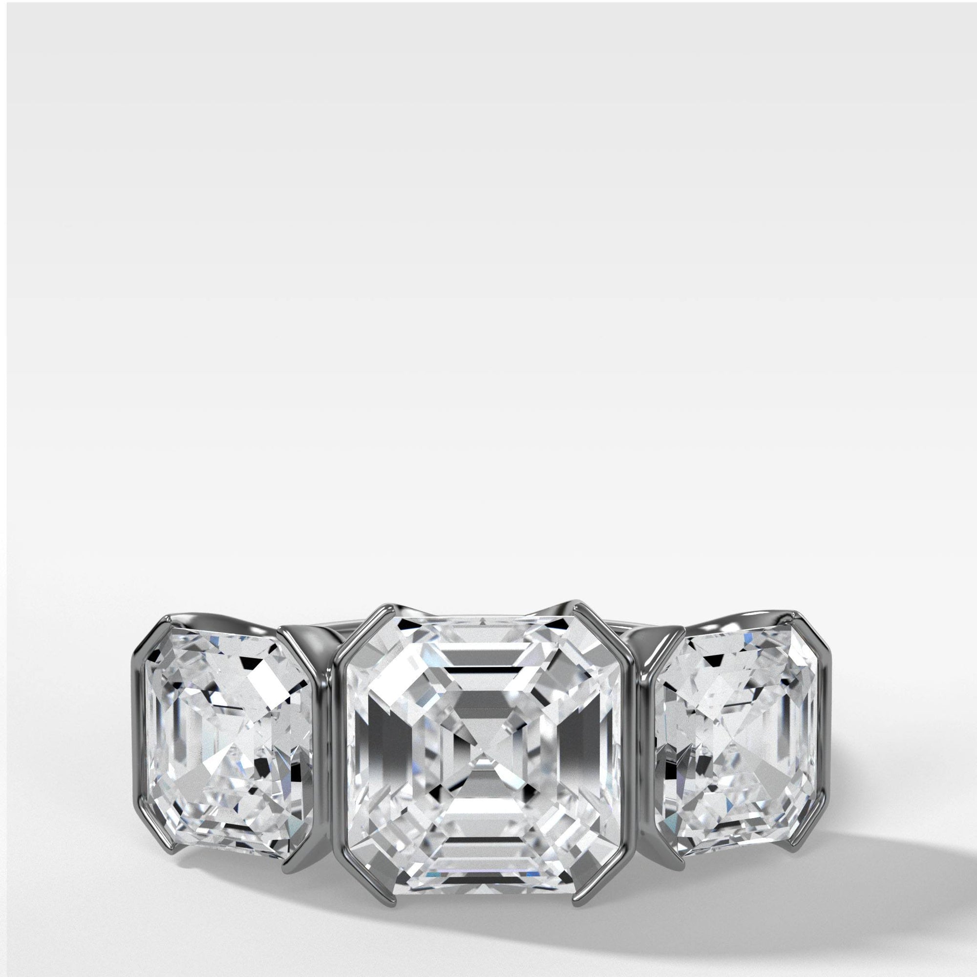Three stone engagement rings are a timeless choice, where the trio of gemstones conveys the beautiful narrative of a couple's past, present, and the exciting chapters yet to come. Typically, the central gemstone, often the most prominent, represents the couple's present, while the flanking stones eloquently symbolize their cherished memories and the exciting prospects that await. The traditional significance behind three stone rings strikes a chord with countless couples. Our collection of three stone engagement rings offers a diverse array of styles, catering to every taste and preference. Whether you prefer a sleek, modern design or an enchanting vintage aesthetic, these rings convey deep sentimental value and make a resplendent and meaningful choice. The enchanting allure of three stone engagement rings lies not only in their breathtaking appearance but also in the profound symbolism they carry. As you peruse our collection, you'll discover an array of captivating options, each expertly crafted to embody the essence of your love story.