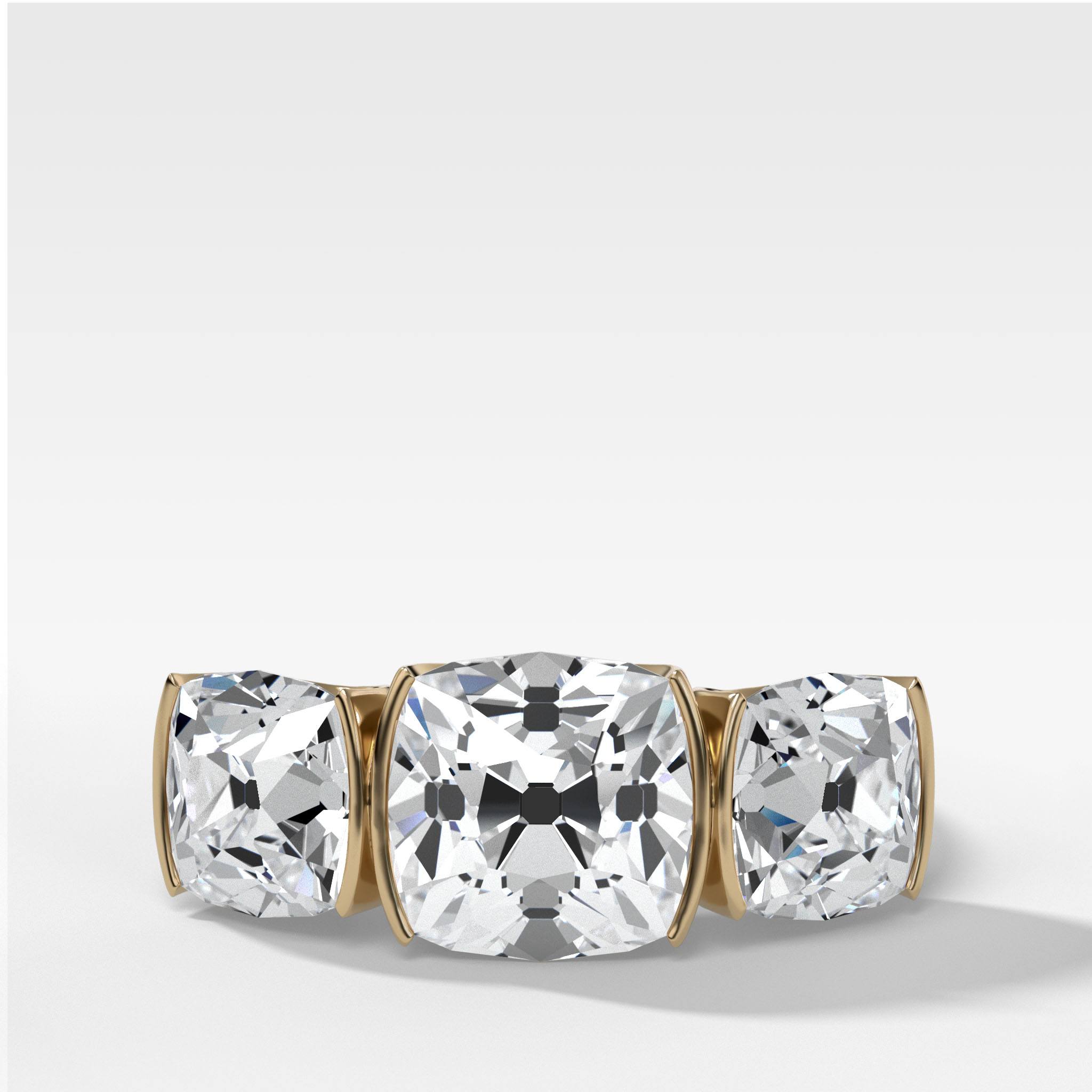 In contrast to simpler traditional styles like solitaire rings, three stone rings present a wealth of design possibilities. With three center stones at your disposal, customization knows no bounds. You have the creative freedom to choose whether to opt for three identical gemstones, creating a harmonious symphony of brilliance, or to select two matching side stones that beautifully complement a prominent center gem. the versatility extends beyond the choice of stones. You can explore a wide array of stone settings, band accents, ring shapes, precious metals, and proportions, tailoring your engagement ring to reflect your unique style and preferences. Whether you prefer a classic look with three dazzling diamonds or desire to infuse colored gemstones for a pop of personality, three stone engagement rings offer boundless opportunities for personalization. This adaptability ensures that your engagement ring not only represents your love story but also your individuality, making it a truly remarkable and versatile choice for couples seeking a symbol as unique as their love.