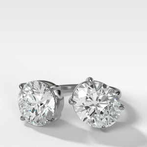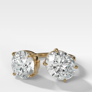 Two diamonds floating on the finger, supported by a gold finger cuff