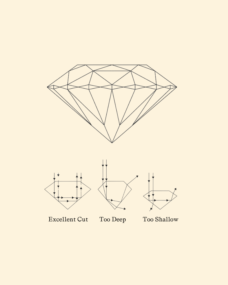 A diamond cut with precision ensures light travels and exits through the top, maximizing the stone's luminous beauty. However, a diamond cut even slightly off can result in light leakage, where light escapes from the bottom, leading to diminished brilliance and a lackluster appearance.