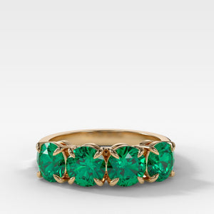 Alianza de boda de cuatro piedras con esmeraldas verdes