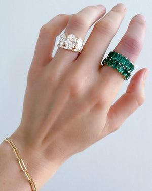 Alianza de eternidad con talla esmeralda y esmeralda verde