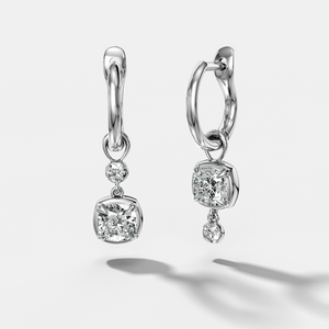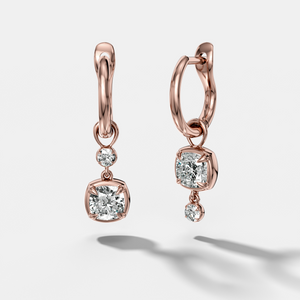 Alternating Mini Tiered Bezel Drop Huggies with Cushion Cut Diamonds