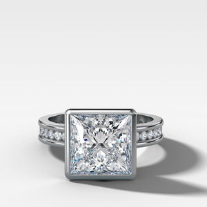 Anillo de compromiso con bisel de canal pequeño y diamante de talla princesa