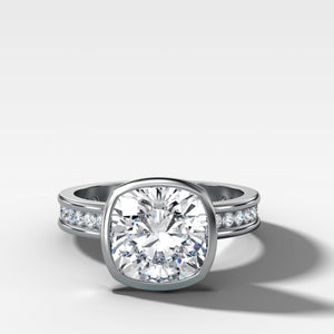 Anillo de compromiso con engarce de bisel de canal pequeño y diamante de talla cojín