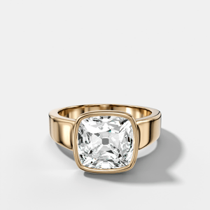 Anillo de compromiso con engaste de bisel cónico más fino y diamante de talla mina antigua