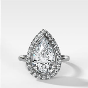 Anillo de compromiso con halo en engarce de bisel y diamante de talla pera