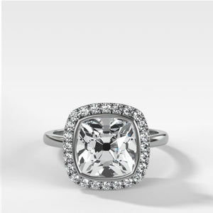 Anillo de compromiso con halo en engaste de bisel y diamante de talla Old Mine