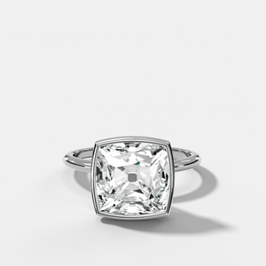 Anillo de compromiso con halo oculto en bisel Penumbra y talla Old Mine