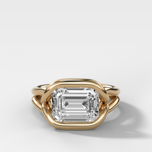 Anillo de compromiso con lazo doble y diamante de talla esmeralda East West